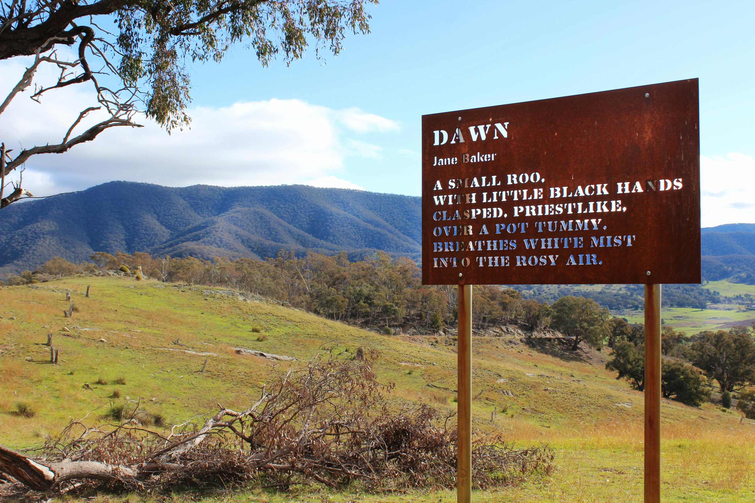 Location: 259 Comur Street, Yass Valley Information Centre. The perfect beginning to your regional arts trail and the perfect poem to open your mind and become intrigued by the context of each poem. Be sure to pick up your copy of the Tourist Drive 7 to follow along your travels.